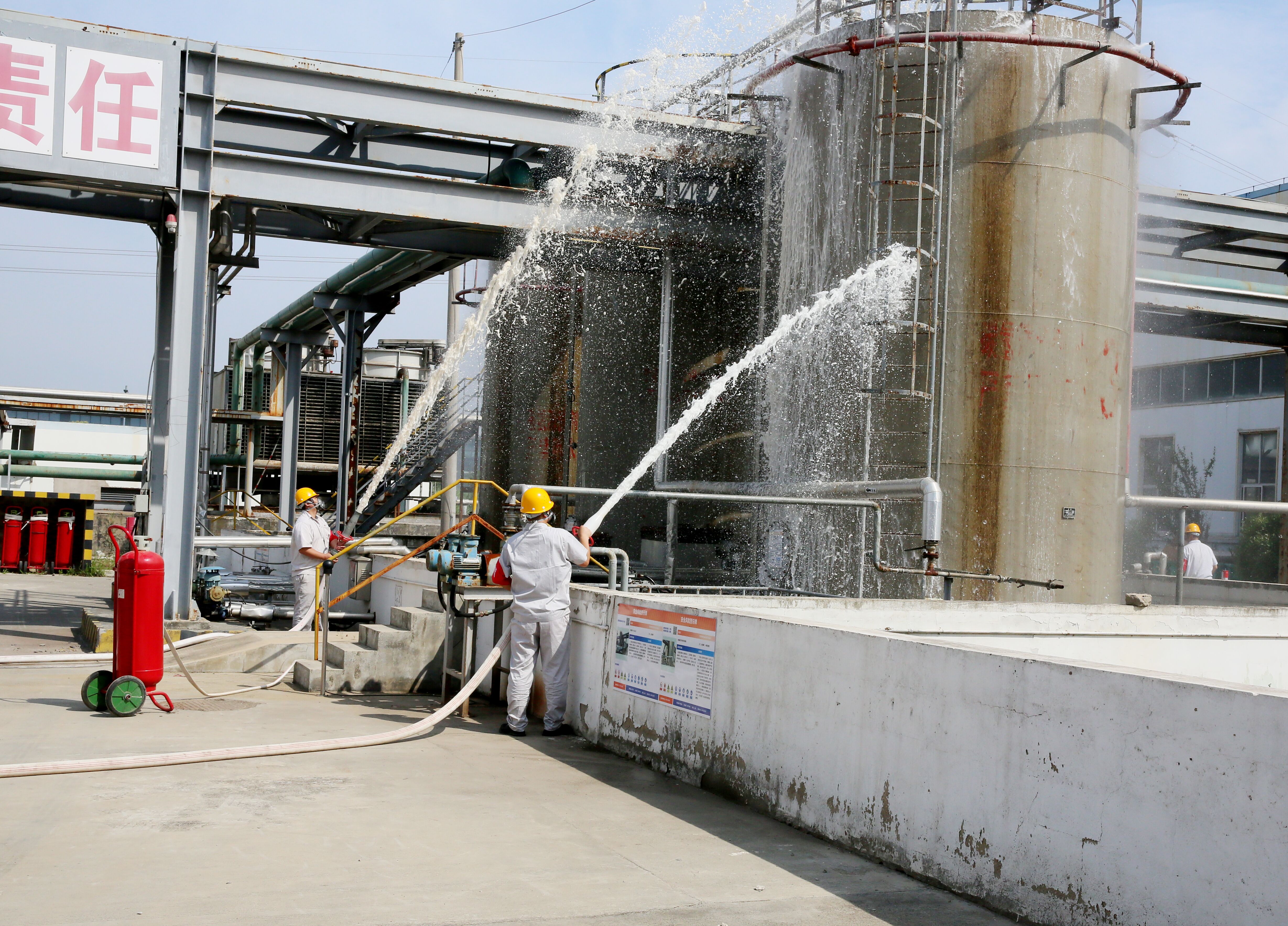 演練模擬神特新材料公司碳?xì)鋬?chǔ)罐區(qū)泄漏引發(fā)火災(zāi)事故,經(jīng)現(xiàn)場(chǎng)處置、啟動(dòng)預(yù)案、應(yīng)急響應(yīng)、專(zhuān)業(yè)救援等程序,最終得到有效控制,達(dá)到預(yù)期效果