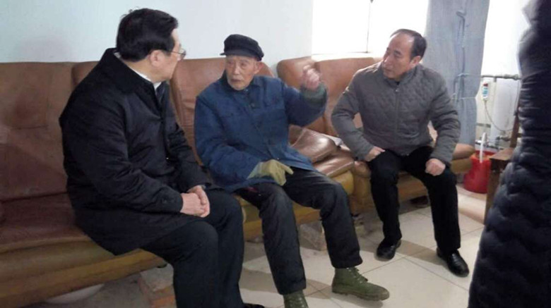 1月20上午,省總工會(huì)副主席曹海(右一)、市總工會(huì)主席李強(qiáng)(左一)一行來(lái)到公司全國(guó)勞模、百歲老人鄭有根家中走訪慰問(wèn),不僅帶去了慰問(wèn)品和慰問(wèn)金,也帶去了黨委、政府以及工會(huì)組織的問(wèn)候和溫暖。集團(tuán)公司工會(huì)副主席李嵐琴、公司黨委書記、經(jīng)理孫政權(quán)等陪同慰問(wèn)。(司宣 司工)
