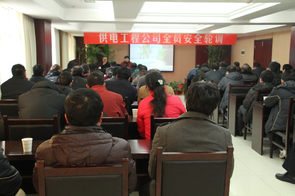 12月15日至16日,公司在淮鹽大酒店三樓會議室舉行全員安全輪訓,各供電所全體員工計133人分兩批參加了培訓。