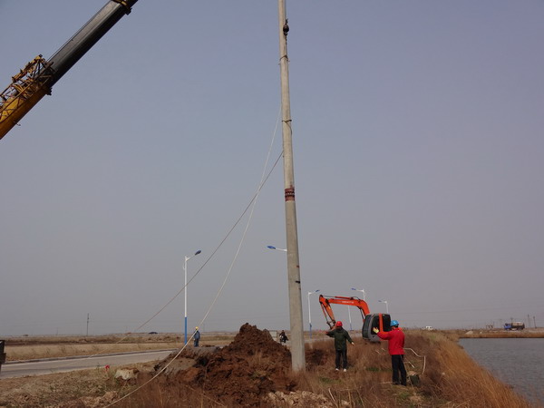 日前,灌西供電所正全力以赴做好變電所新增35KV線路的線路架設(shè)工作。新增35KV的電源接入是一項利于企業(yè)長遠發(fā)展的重要舉措,至關(guān)重要。建成后,可解決因原變電所35KV供電線路老化、故障頻繁而造成的供電不良狀況,從而提高用電質(zhì)量,提供安全可靠的供電。工程現(xiàn)已完成地形勘測、桿位定點,該所正抓緊時間進行立桿,做好線路架設(shè)工作,為力爭在5月底前,盡快投入運行。圖為線路工正在立桿。(王志勇)