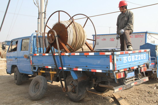 為解決這個難題,班組職工們自發(fā)地在一起探討研究,集思廣益,提出各種施工工具改進意見。經(jīng)過多次試驗,最終確定了利用機動車動力帶動放線架、取代人工放線的方法。改造后的放線設(shè)備收放線通用,人工操作與動力操作兩用。在工程施工中實際操作驗證,取得較好效果。