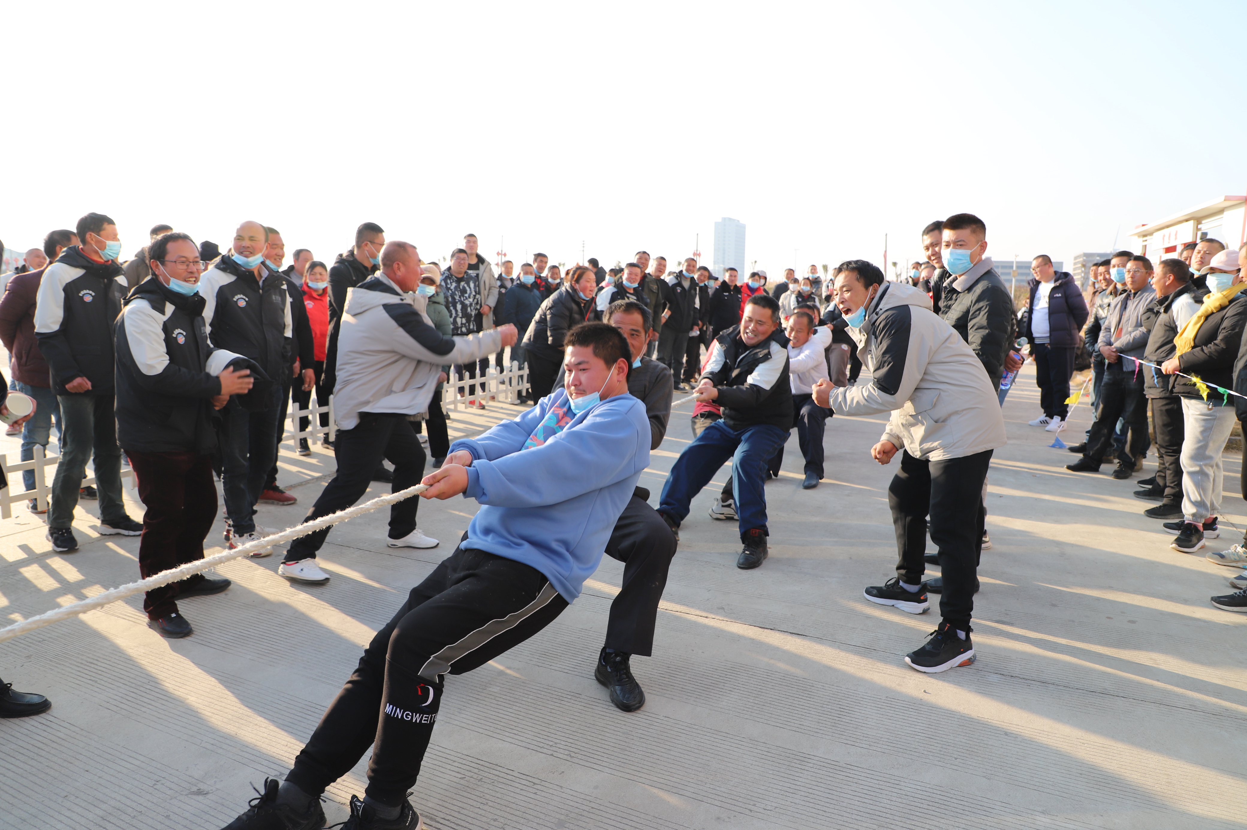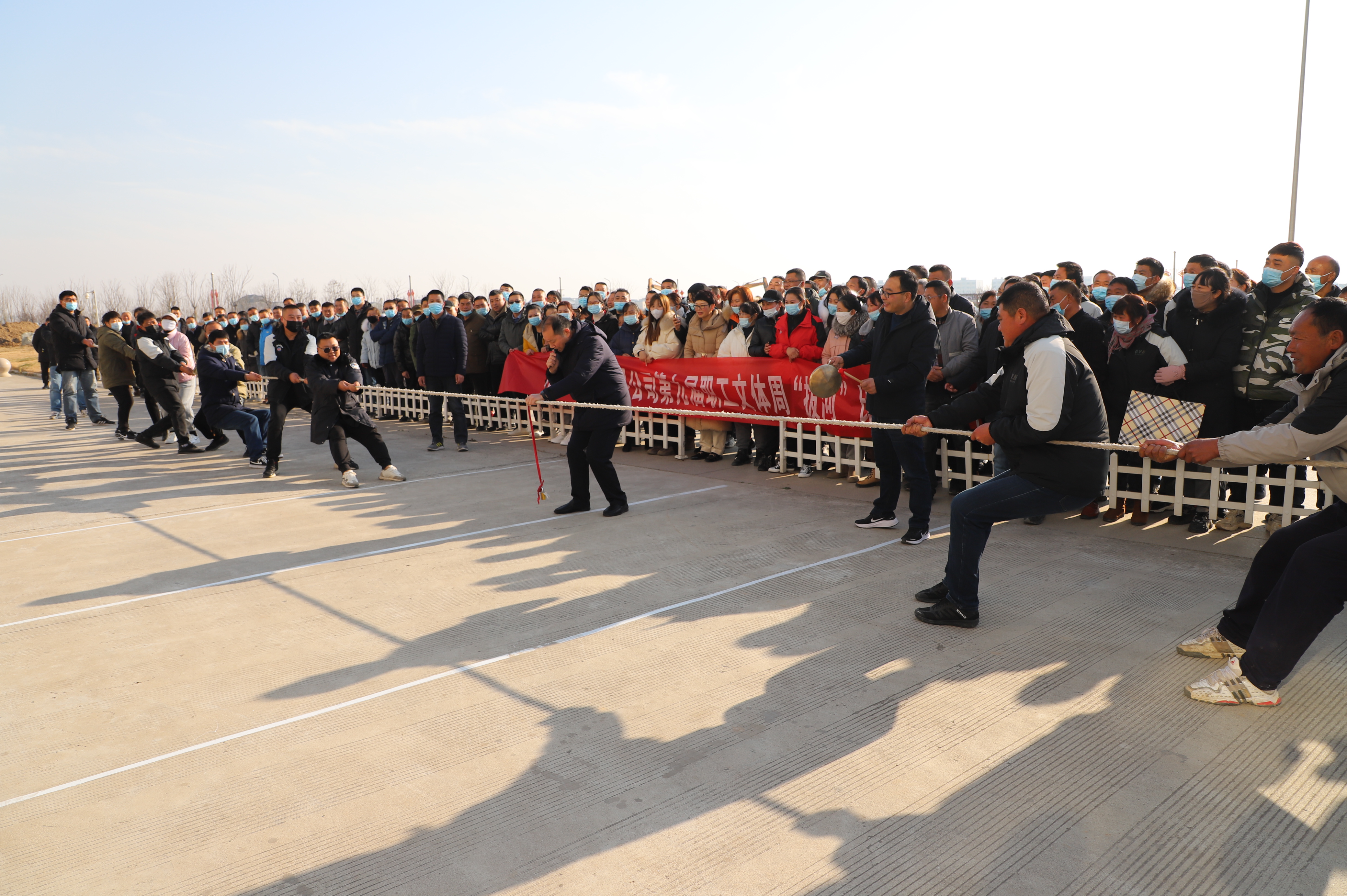 開幕式結(jié)束以后,緊張激烈的拔河比賽立即展開。由新河、埓南、宵洋等單位組織的13支參賽隊(duì)伍按照抽簽順序逐一上臺(tái)亮相。賽場(chǎng)上,鼓舞聲、吶喊聲此起彼伏,參賽隊(duì)員們團(tuán)結(jié)協(xié)作、不到最后一刻永不言棄的精神贏得了在場(chǎng)觀眾的陣陣掌聲。經(jīng)過(guò)近一個(gè)小時(shí)的激烈角逐,最終埓南制鹽分公司一隊(duì)力壓群雄,奪取拔河比賽第一名,新河制鹽分公司隊(duì)、新河制鹽分公司隊(duì)及宵洋物流公司代表隊(duì)分獲二至四名。
