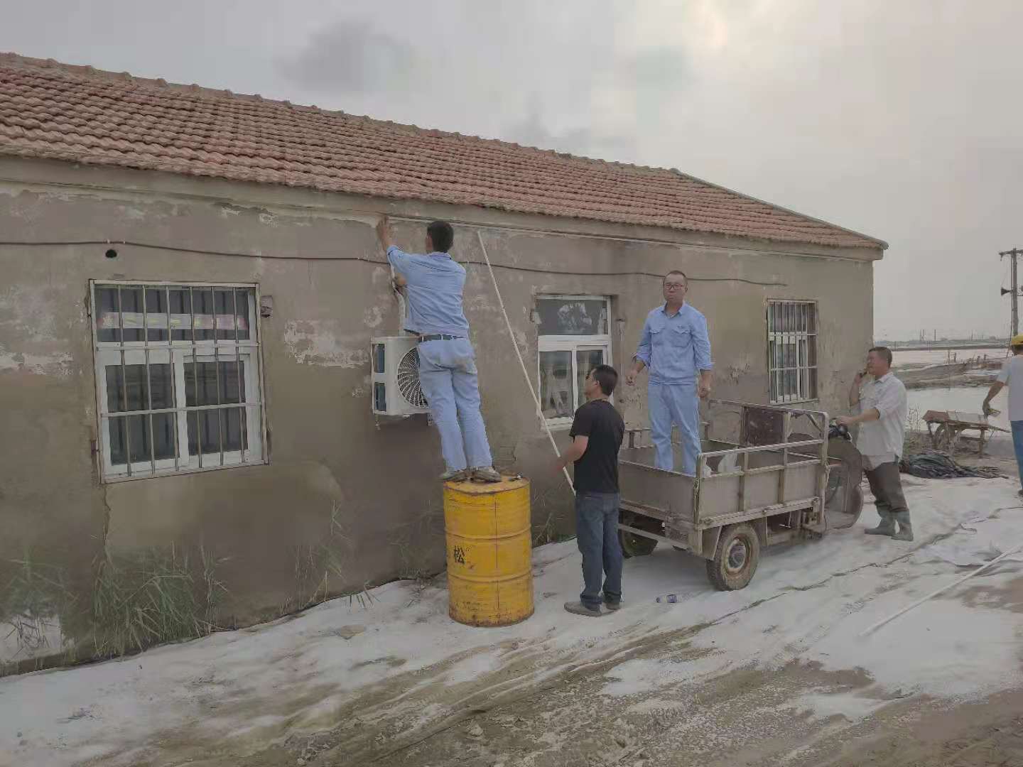 高溫酷暑、炎炎烈日下,在日曬制鹽的灘頭到處都是大汗淋漓、被曬得黝黑的鹽工們,因為他們的堅守和辛勤付出,才有了公司屢創(chuàng)佳績的今天?!爸蛋嗍姨珶崃?,夜間值班無法休息?!丙}工有訴求,組織有回應(yīng),公司為此按程序集中采購了一批空調(diào)。為能更快更好將空調(diào)安裝至各班組值班室,維護工們不辭辛勞與安裝人員一起加班加點,現(xiàn)已全部安裝到位。