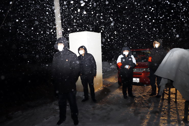 風(fēng)雪中堅守在疫情防控一線的灌西人