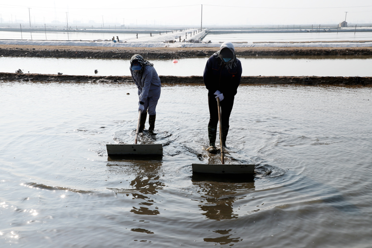 強化鹵水提制。密切關注天氣變化,緊緊抓住小滿前后的有利天時,科學安排走水線路,提高蒸發(fā)量的利用率。通過四輪壓格機器反復壓制整治滲漏池板,減少池板的鹵水滲漏。強化“三雨”操作,嚴格的塑池管理,加強塑布更新和修補,嚴控跑冒滴漏。提高公司灘地綜合利用率,充分利用廩基、排淡溝道等有效面積,利用高濃度淋板水,小鹽化鹵等窮制鹵措施,提制飽和鹵水,提升制鹵量。大力推廣應用先進的制鹵工藝,保障產出高質的海水鹵。