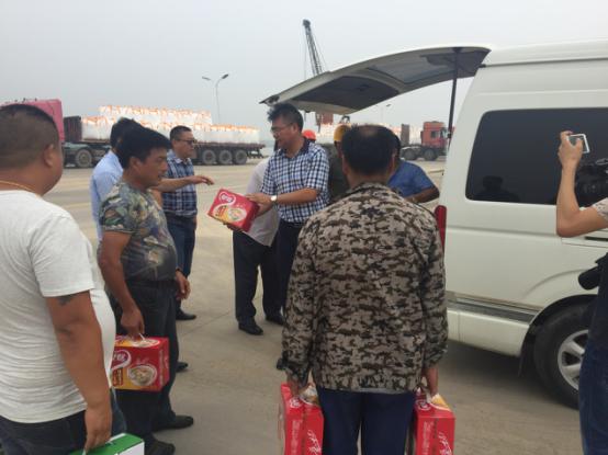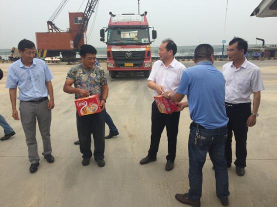 2017年7月18日星期二下午灌西鹽場投資公司領導到宵洋物流有限公司碼頭送清涼看望一線員工!在黨委書記董事長王德志同志、總經(jīng)理李國文同志、工會主席王保平同志的帶領下親自到我宵洋物流有限公司碼頭看望一線員工,送清涼。炎炎夏日,酷暑當頭一線員工永遠沖鋒在前,領導的關懷更是永不停止!宵洋物流全體員工致謝?。ㄏ笸跞唬?br />