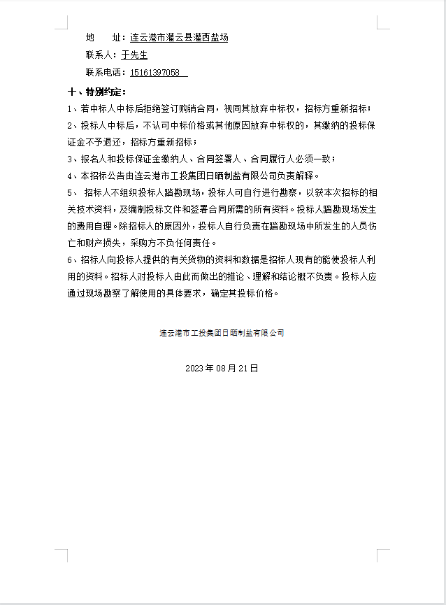 日曬制鹽有限公司橡膠墊等物資招標(biāo)公告
