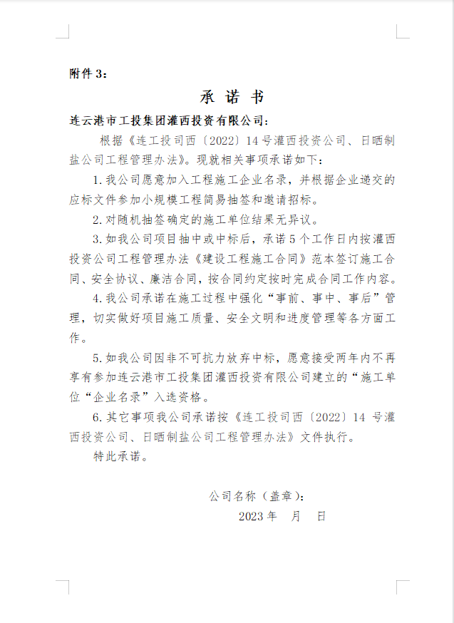 灌西投資有限公司 日曬制鹽有限公司關于建立國有資金投資小規(guī)模工程施工“企業(yè)名錄”的公告
