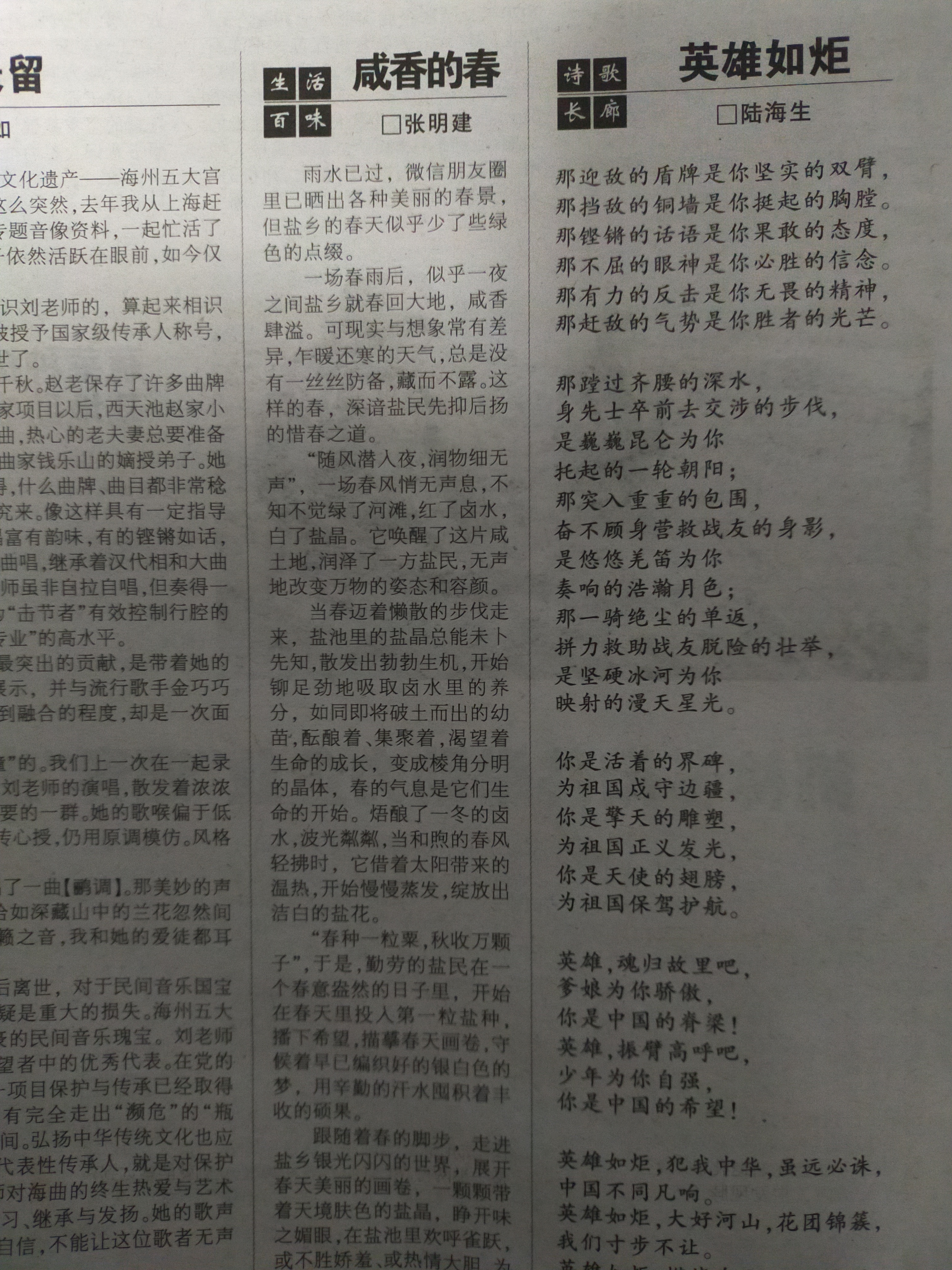 跟隨著春的腳步,走進(jìn)鹽鄉(xiāng)銀光閃閃的世界,展開春天美麗的畫卷,一顆顆帶著天境膚色的鹽晶,睜開味之媚眼,在鹽池里歡呼雀躍,或不勝嬌羞、或熱情大膽,為鹽鄉(xiāng)的春斟滿咸香。(張明建)
