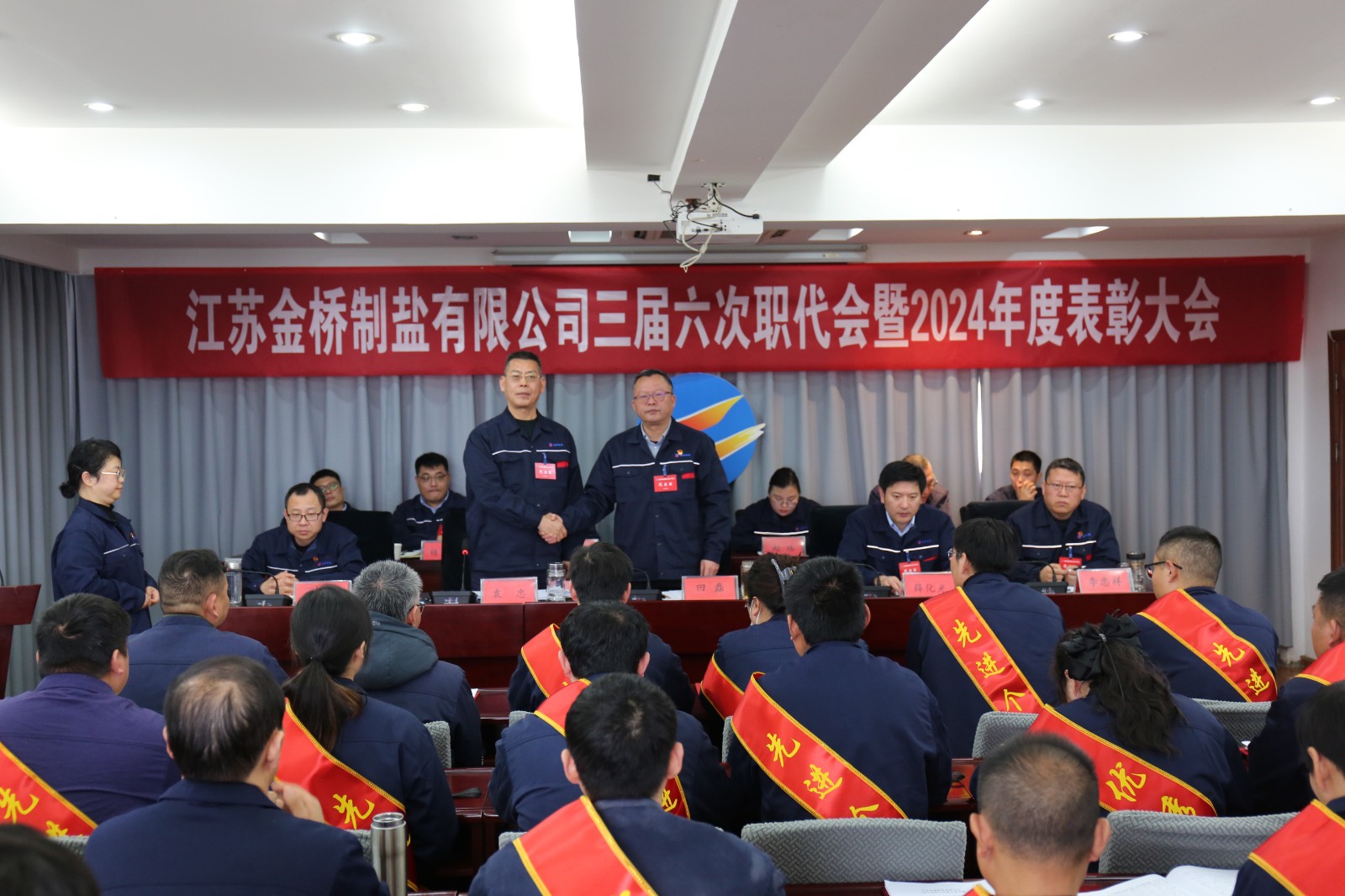 1月23日,金橋制鹽公司隆重召開(kāi)三屆六次職代會(huì)暨2024年度表彰大會(huì)。來(lái)自公司各條戰(zhàn)線的45名代表忠實(shí)履行職責(zé),積極獻(xiàn)計(jì)獻(xiàn)策,共商發(fā)展大計(jì)。公司黨委書(shū)記、董事長(zhǎng)田磊作講話。公司常務(wù)副總經(jīng)理薛化光作《工作報(bào)告》。公司黨委副書(shū)記、紀(jì)委書(shū)記、工會(huì)主席袁忠主持大會(huì)。