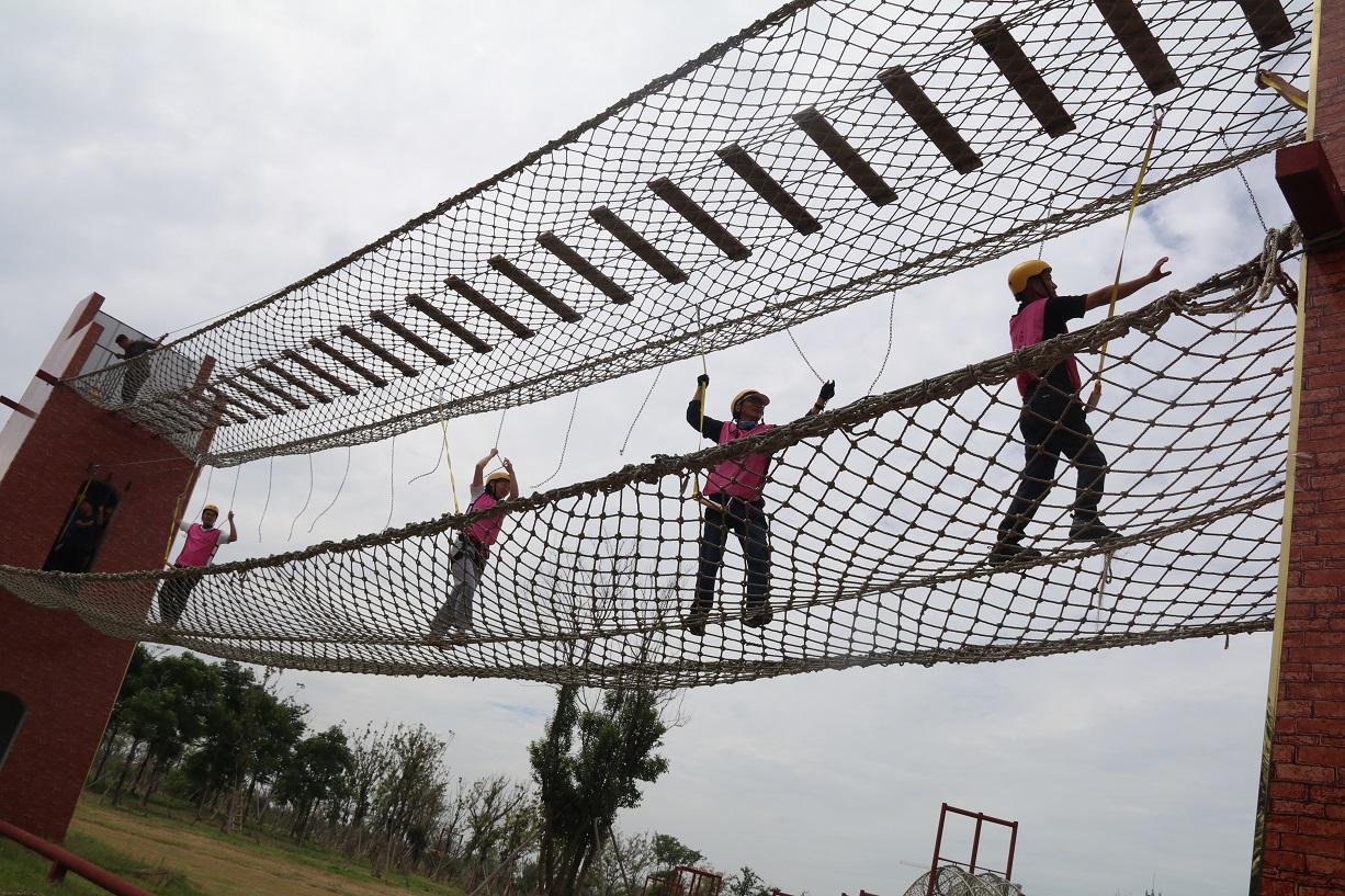 接著,四個小組先后體驗了“強渡大渡河”、“飛奪瀘定橋”等紅色實景教育項目,使廣大職工體會到當年紅軍長征的艱苦環(huán)境,感受了重走長征路的氛圍,增進了職工之間的團隊友誼、鍛煉了隊員勇于挑戰(zhàn)的堅強意志。