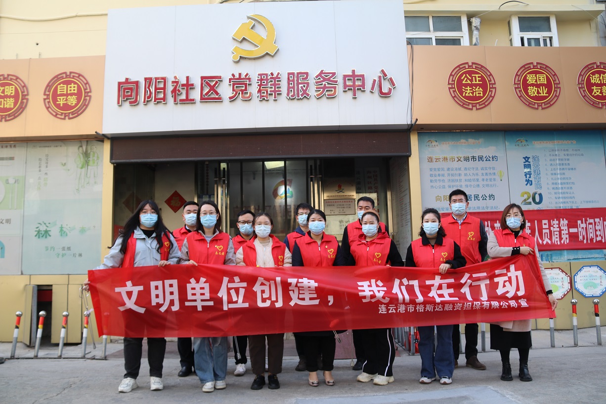 發(fā)揚(yáng)志愿者精神,響應(yīng)海州區(qū)文明辦開展創(chuàng)建全國(guó)文明城市文明單位創(chuàng)建我們?cè)谛袆?dòng)活動(dòng),114日,金融板塊組織17名黨員、積極分子、青年員工參加向陽社區(qū)志愿服務(wù)活動(dòng)。