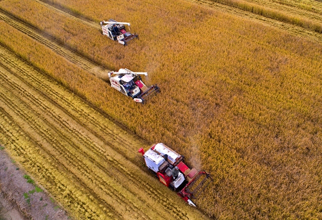 ? ?10月28日,青口投資公司的萬畝鹽堿地標準化農田里,有機水稻示范點率先開鐮收割,現(xiàn)代化收割機正開足馬力進行水稻收割作業(yè),到處一派繁忙喜悅的秋收景象。