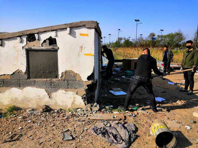 “轟隆隆...”位于242道路兩側(cè)的看護(hù)房旁,不時(shí)傳來(lái)挖掘機(jī)拆除房屋的聲音。為期四天的五一長(zhǎng)假, 青口 投資公司上下一片忙碌,人員、機(jī)械高效奮戰(zhàn)在環(huán)境整治第一現(xiàn)場(chǎng)。