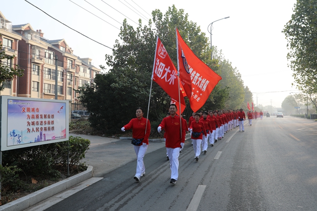 10月20日清晨,米業(yè)營銷公司聯(lián)合海州區(qū)微馬隊(duì)共同開展健步走活動,吸引了共三百余名健身愛好者參與其中。本次活動旨在進(jìn)一步宣傳提高“鹽田玉”品牌的知名度,讓廣大市民在積極運(yùn)動的過程中認(rèn)識“鹽田玉”、了解“鹽田玉”,拓寬“鹽田玉”宣傳渠道,提倡積極健康的生活方式,倡導(dǎo)廣大市民吃優(yōu)質(zhì)大米,過健康生活。本次健步走海州區(qū)石棚山景區(qū)廣場出發(fā),內(nèi)環(huán)朐陽門、海州古城、秦東門大街返回,全程3.6公里。?(顧?益)
