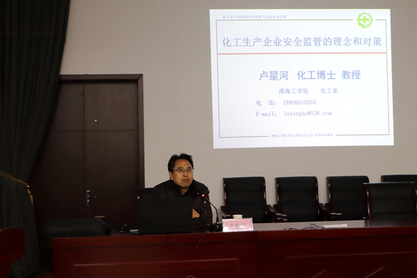 319日上午,公司特邀淮海工學(xué)院化工系盧星河教授作題為《化工生產(chǎn)企業(yè)安全監(jiān)管的理念和對策》安全知識講座。