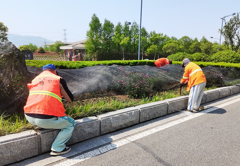 五一期間現(xiàn)場(chǎng)一片繁忙景象。養(yǎng)護(hù)工人們采取錯(cuò)峰作業(yè),避開交通高峰,手持高壓水槍 ,對(duì)轄區(qū)東方大道、匯晶路、顧圩路兩側(cè)新栽植的苗木進(jìn)行精準(zhǔn)澆灌,確保新栽苗木存活率;東方大道養(yǎng)護(hù)班在孫班長(zhǎng)的帶領(lǐng)下,對(duì)東方大道中央隔離帶內(nèi)進(jìn)行補(bǔ)植麥冬,采取覆蓋遮陽(yáng)網(wǎng)等措施,以減少水分蒸發(fā)和避免陽(yáng)光灼傷。同時(shí)充分利用雨后土壤松軟,組織工人對(duì)轄區(qū)綠化帶內(nèi)的雜草、雜樹進(jìn)行清除。
