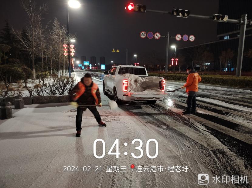 ? ? 220日晚,港城迎來(lái)又一輪降雪,低溫雨雪冰凍天氣對(duì)城市道路交通和市民出行產(chǎn)生較大影響。為確保雪天道路暢通及市民出行安全,綠化分公司聞雪而動(dòng),219日晚開(kāi)始,組織應(yīng)急隊(duì)伍連夜行動(dòng),在花果山大道、黃海大道等開(kāi)發(fā)區(qū)主干道融雪劑,開(kāi)展清雪除冰工作,掀起一場(chǎng)齊心協(xié)力、團(tuán)結(jié)互助的戰(zhàn)風(fēng)雪保通暢行動(dòng)。