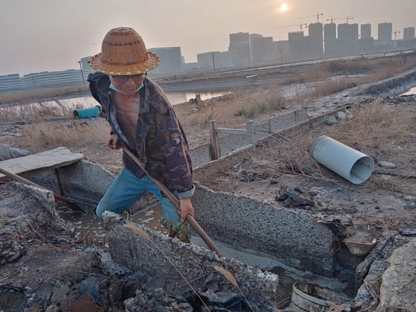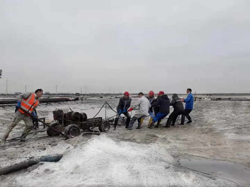 在海州灣大浦班組367畝的礦鹽生產(chǎn)灘地上,遠遠的看去,只有三個人在灘地上忙碌,分別是班長孫和華和兩名鹽工。在十月份的時候,原大浦班組班長夏軍帶領(lǐng)第一批鹽工前往海福特,孫和華因為身體原因選擇了留下,此時,生產(chǎn)班組人數(shù)減半,只剩下三人。新產(chǎn)業(yè)要開發(fā),礦鹽復產(chǎn)也要攻堅,當公司征求部分職工意見,誰愿意來做大浦班組的班長,維持礦鹽正常生產(chǎn)。大家心里都明白,這不是一份榮譽,而是一份責任,是千斤重擔,一片生產(chǎn)灘地只有三人,這是一個燙手山芋的活。這時,孫和華站了出來,他說:“我是一名老黨員了,黨員就是要平時看出來、困難站出來、危急豁出來,為其他同志樹立黨員先鋒模范作用,這份擔子,理應(yīng)我來挑!”