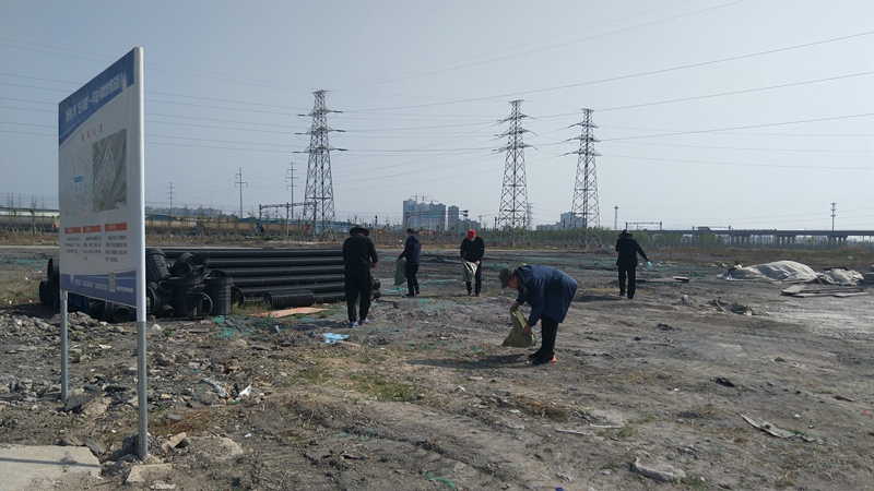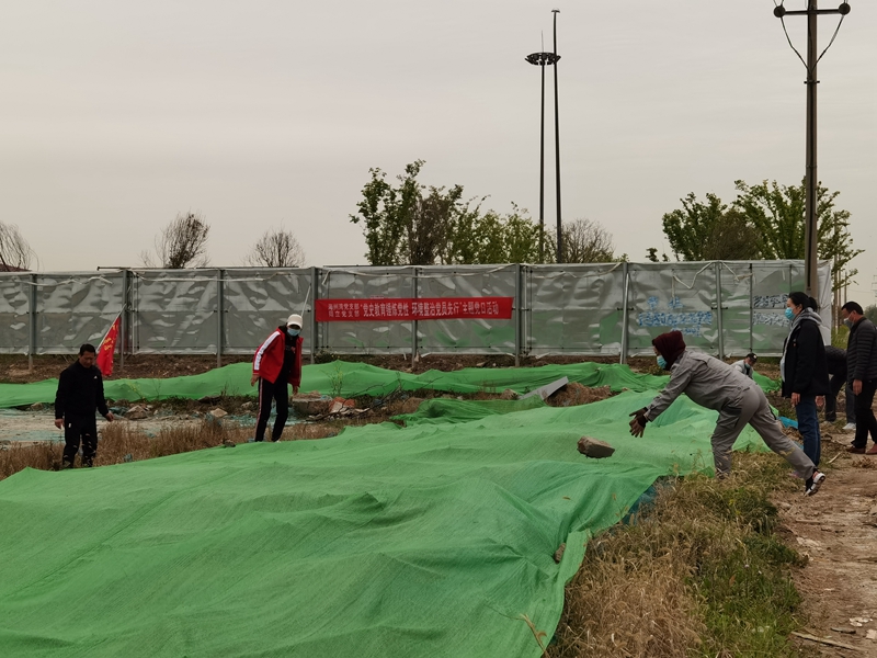 翔立分公司黨支部攜手海州灣公司黨支部對公司的車站小灘進(jìn)行環(huán)境整治,為裸露在外的土地進(jìn)行防塵網(wǎng)鋪設(shè)。