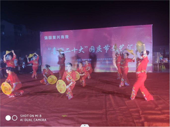 ? ?為迎接黨的二十大勝利召開,以良好的精神風(fēng)貌向祖國(guó)73周年獻(xiàn)禮,豐富臺(tái)北鹽場(chǎng)小區(qū)黨員群眾精神文化生活,營(yíng)造歡樂的節(jié)日氛圍。9月30日晚,由猴嘴街道昌圩社區(qū)新時(shí)代文明實(shí)踐站主辦,臺(tái)北猴嘴辦事處承辦的“喜迎二十大”為主題的國(guó)慶節(jié)文藝匯演在猴嘴昌圩小區(qū)精彩開演,吸引了眾多鹽場(chǎng)黨員群眾參與及觀看。?