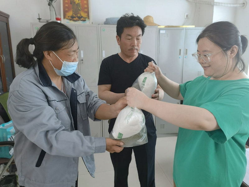 公司班子成員還自費為班組成員、保安、保潔發(fā)放綠豆、白糖等降暑物資。
