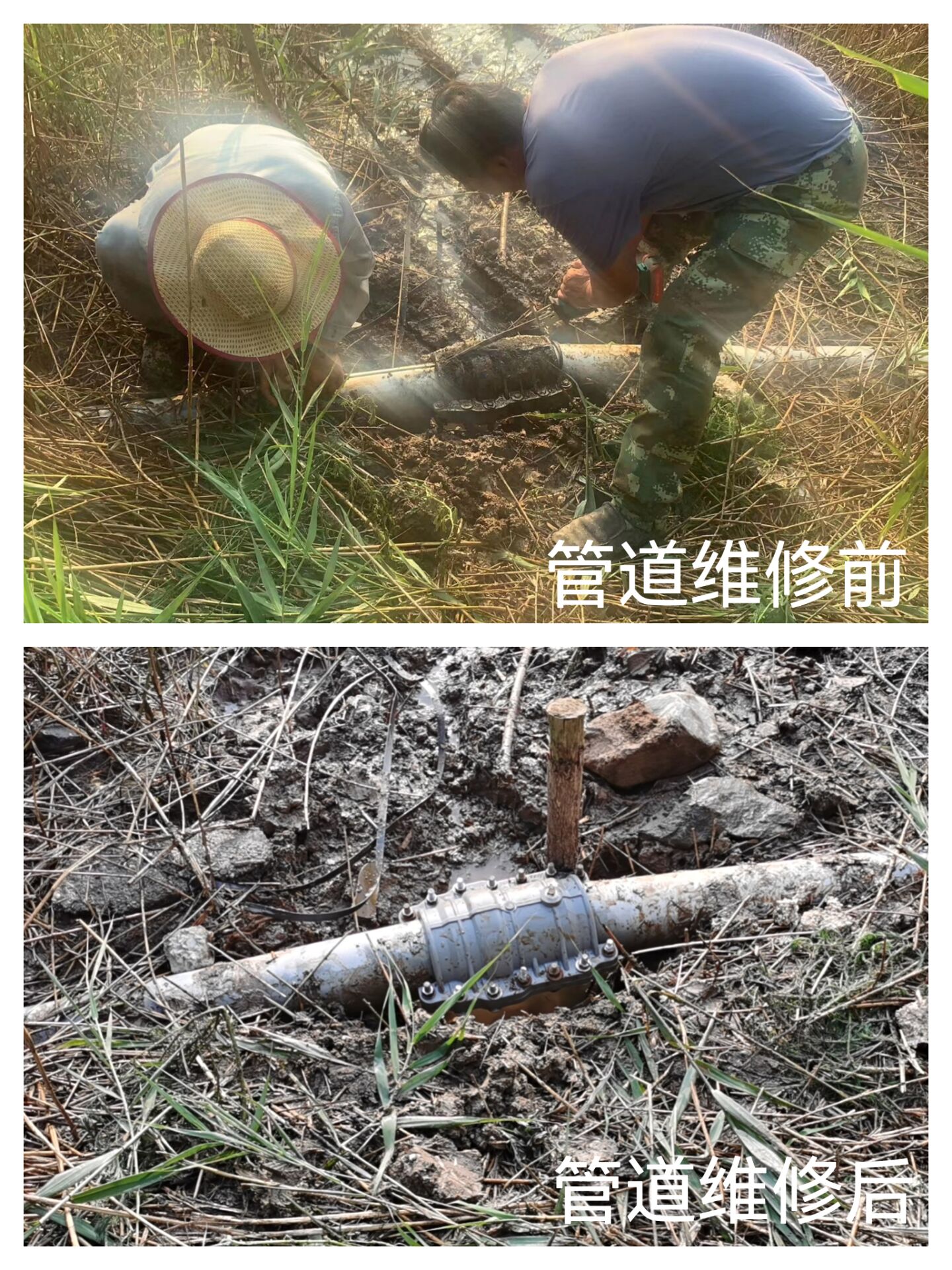 經(jīng)過現(xiàn)場查看,發(fā)現(xiàn)該處管道一直在往外噴射鈣液,管道組王建華、汪永柱兩位師傅立即討論現(xiàn)場維修方案,秉承降本增效的原則,能修不換,決定用哈弗節(jié)進(jìn)行維修固定。