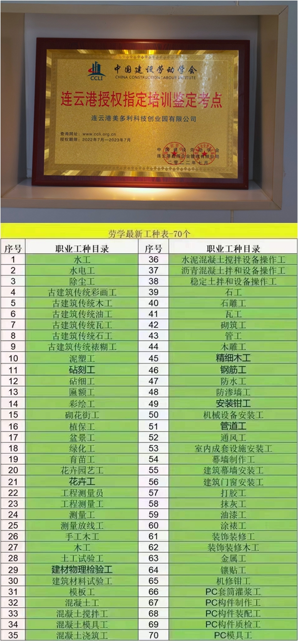 近日,通過多次協(xié)調(diào)和努力,美多利公司順利獲得“中國建設(shè)勞動學職業(yè)技能等級認定”資質(zhì)。