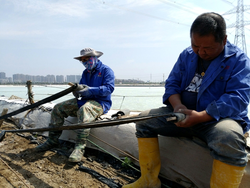 大浦工區(qū)更換塑池浮板確保鹽產(chǎn)量