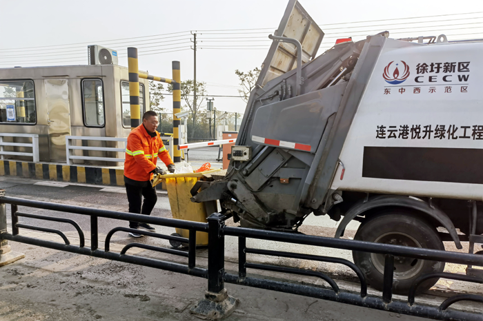 徐圩新區(qū)地域面積較大,廠區(qū)單位分布分散,形成集中清運(yùn)點(diǎn)之間的跨度大、距離遠(yuǎn),從最東端的虹洋港口到最西端242省道邊的人文園,兩點(diǎn)相距就有15公里之多,面廣量大。為及時(shí)高效完成垃圾清運(yùn)工作,羅海軍每天凌晨4點(diǎn)他對(duì)作業(yè)車輛進(jìn)行仔細(xì)檢查,隨后召開班前會(huì)議,他倡議全班工作人員:“吃在車上,干在路上?!睜?zhēng)分奪秒,確保工作完成更到位、更扎實(shí)。