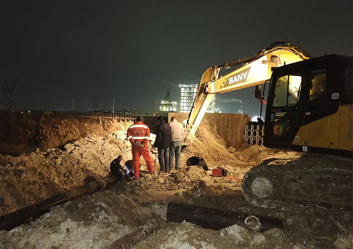 深夜10時(shí)許,一處施工現(xiàn)場,施工正酣,挖掘機(jī)轟鳴聲不斷,工人們還在加緊作業(yè),雖冬日寒意逼人,工地上仍是一派熱火朝天的景象。陸建軍、季小東等施工人員克服重重困難,破路面,挖掘管路泥土,熔接,鋪設(shè)管道,在遇到的每個(gè)困難中,都傾盡全力,擔(dān)當(dāng)作為。經(jīng)過十余天緊張施工,已完成直徑400PE管道768米、直徑200給水管道804米鋪設(shè)工作,完成工作量99%,滿足了規(guī)劃的總體要求,后續(xù)修筑檢查井也在有序進(jìn)行中。(楊維軍)