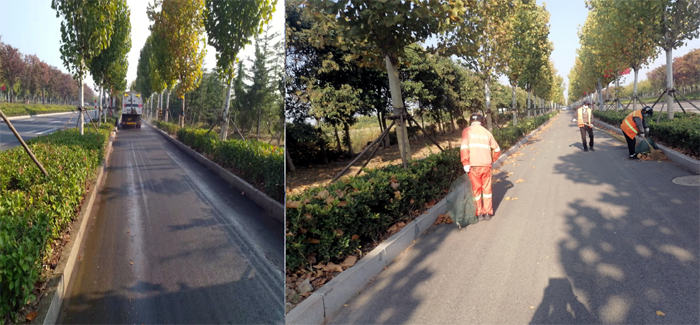持續(xù)加大環(huán)衛(wèi)巡查力度。該分公司制定詳細(xì)預(yù)案,成立落葉期專項(xiàng)工作小組。采取人機(jī)結(jié)合方式,最大化保證清掃效果。加大機(jī)械化清掃力度,按照板橋工業(yè)園區(qū)道路環(huán)境,對(duì)落葉集中路段進(jìn)行重點(diǎn)清掃,巡回收集,確保隨落隨清。合理調(diào)整環(huán)衛(wèi)保潔人員,重點(diǎn)清掃機(jī)械清掃后的停車等障礙死角,適時(shí)延長(zhǎng)人工保潔作業(yè)時(shí)間,加大落地枯死枝撿拾力度,為清掃車作業(yè)清除障礙。