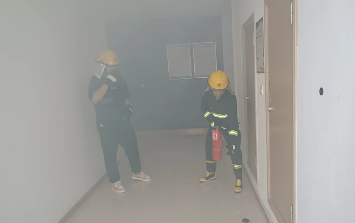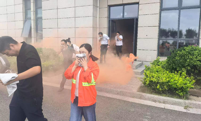 本次演練模擬公司辦公樓三樓電纜井因電路故障引發(fā)火情組織職工開展應(yīng)急疏散。 “起火啦!”15時許,辦公樓三樓一電纜井內(nèi)突然涌出滾滾濃煙。臨近人員發(fā)現(xiàn)著火后,第一時間使用滅火器進行撲救。濃煙觸發(fā)自動報警裝置,消防控制室值班人員接到警報后,立即通知志愿消防隊伍趕赴現(xiàn)場撲救,并撥打報警電話,向應(yīng)急指揮部報告。公司應(yīng)急指揮部立即啟動應(yīng)急預案,滅火搶救組、安全救護組、緊急疏散組等應(yīng)急小組隨即到位,有條不紊開展滅火、疏散等工作。消防救援隊伍到達現(xiàn)場后,接過現(xiàn)場指揮權(quán),開展滅火救援。安全搶救組搜索受傷人員,并對受傷人員簡單急救后送往醫(yī)院進行治療,緊急疏散組立即組織辦公大樓人員,用濕毛巾捂住口鼻從應(yīng)急通道撤離。10分鐘后,險情排除,應(yīng)急救援結(jié)束。最后,組織部分人員開展滅火實操演練
